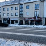 Schaufensterfront mit direktem Straßenzugang und Parkplätzen